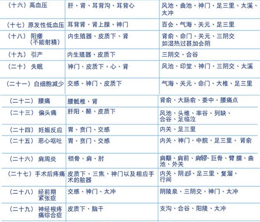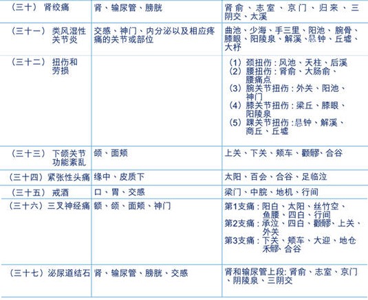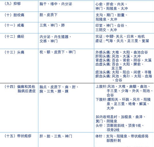 摘自:江苏省中医院罗明主任等主编“实用针灸学”中《世界卫生组(WHO)向各国推荐针炙适应症的处方》