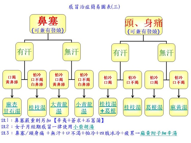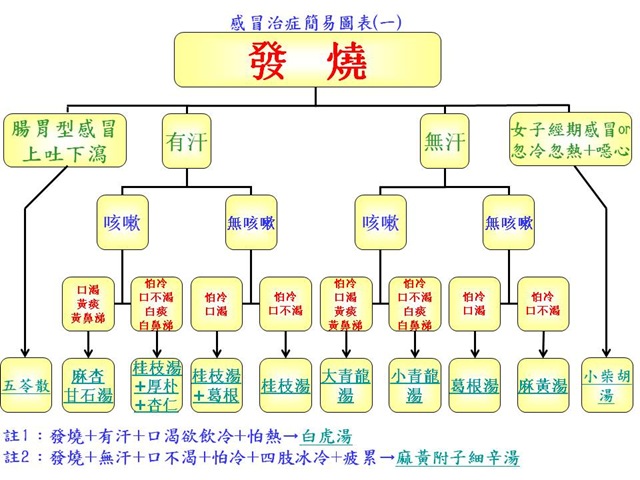 该图根据倪海厦恩师的指导、由张孟浩的精心制作及叶昭呈完美的slides show完成。读表的方法:请由最上方之有汗无汗开始读起,再依症状分支往下走到对应方剂为止。
