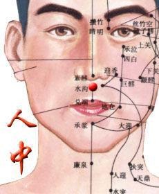 人中穴位于人体鼻唇沟的中点,是一个重要的急救穴位。主治癫狂痫,中风昏迷,小儿惊风,面肿,腰背强痛等症。我们常说“掐人中”,这句话在人晕倒的时候用的最多。当然掐人中只是一种简便的应急急救措施,还应及时与医院联系,进一步抢救,以免延误病情。