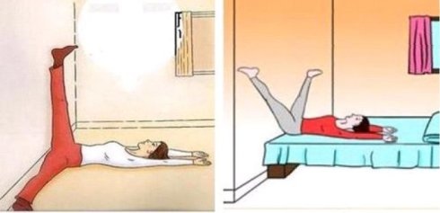 2、也可仰卧在床上,臀部和双腿贴墙,双脚朝上尽量分开,如同英文大写字母Y,拉3~30分钟。